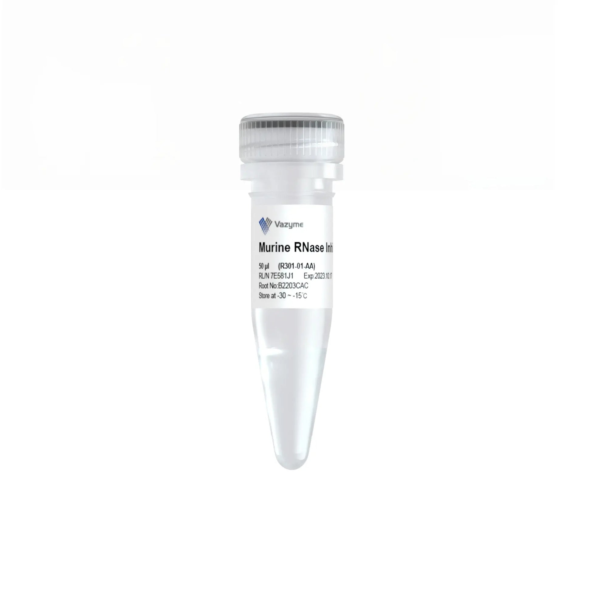 Murine RNase Inhibitor is a recombinant mouse-derived RNase inhibitor expressed and purified in E.coli in a soluble form. It can extensively inhibit various RNases (RNase A, B, C). Murine RNase Inhibitor has undergone RT-PCR and RT-qPCR tests and is compatible with HiScript II Reverse Transcriptase, HiScript Reverse Transcriptase, M-MLV (RNaseH-) Reverse Transcriptase and various DNA Polymerases. Compared with human-derived RNase inhibitor, mouse-derived RNase inhibitor does not contain two cysteines that are very sensitive to oxidation in human protein, so it has higher antioxidant activity and is more suitable for experiments sensitive to high DTT (Such as qPCR).